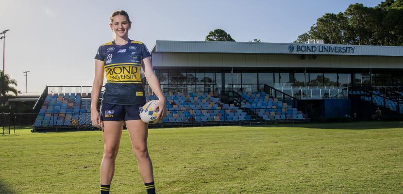 Zoe Hanna created history this year by becoming the first female recipient of Bond University’s prestigious John Eales Rugby Excellence Scholarship and now she is making the most of every opportunity starting for the Bull Sharks premier grade team.