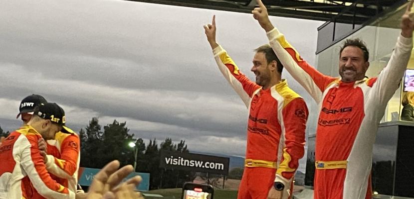 Kenny Habul, right, celebrates his win in the 2022 Liqui Moly Bathurst 12 Hour race.